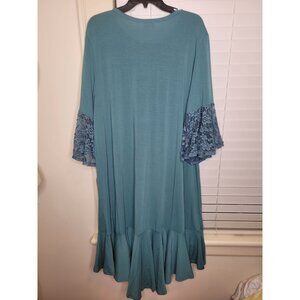 Lularoe Maurine Dress 3XL Teal Lace Bell Sleeves Ruffle Hem NWT Party Summer