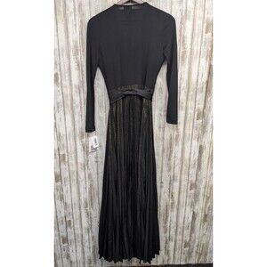Lularoe Long Dress Duster Black Gold Pleated Long Sleeve DeAnne Wrap XXS NWT
