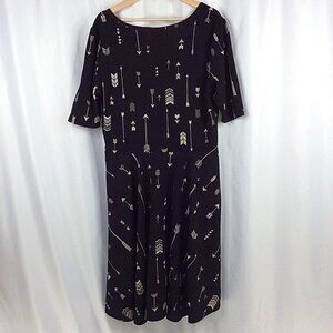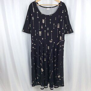 Lularoe Nicole Black Arrow Print Skater Dress Women's Plus Size 3XL Half Sleeve