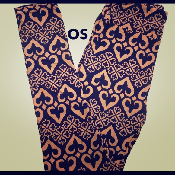 Beautiful print LLR OS leggings - Navy background with peach colored print - NWT