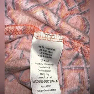 Poly, cotton, rayon, spandex blend. Override body with fitted sleeve. Hi/lo hem. Long enough to cover your rush! Great color way for warm weather ahead! Pit to pit measures 23”