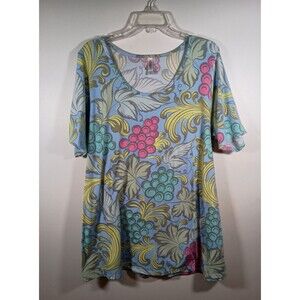 Lularoe Perfect T Swing Short Sleeve Blue Floral Flower Grapes Plus Size 2XL