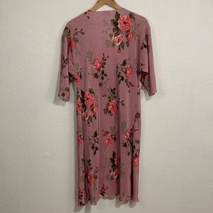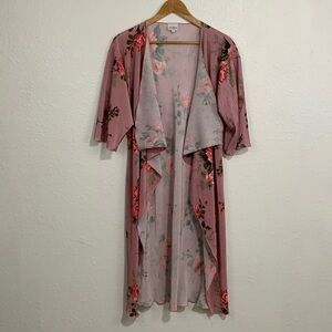 Lularoe Pink Floral Ribbed Open Front Shirly Kimono Size S