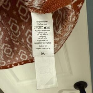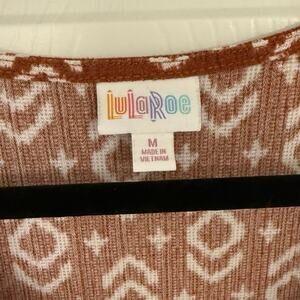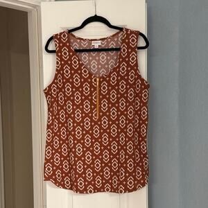 Elevate your wardrobe with this stylish Lularoe Rachael Sleeveless Top! The unique burnt orange rust color and eye-catching white design make it a standout piece.