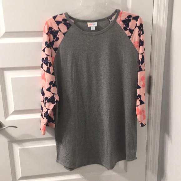 Grey with blue and pink sleeves. Minnie Mouse geometric design. Never been worn