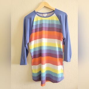 Lularoe , Randy 3/4 Sleeve T -Shirt, Multicolor Rainbow, Size Large