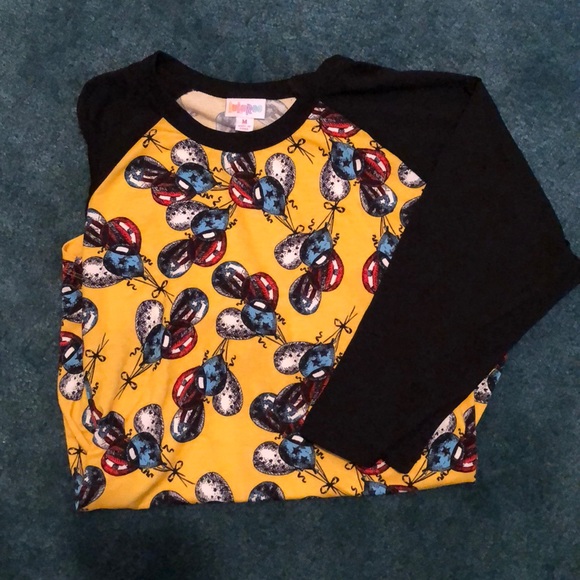 Brand new without tags. Size medium Randy. Yellow, black sleeves, and red white and blue balloons.