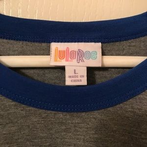 Lularoe Randy solid gray body with bright blue sleeves worn one time ! EUC smoke free pet free home