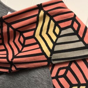 Only worn once. Grey on body. Black, coral, yellow and grey on the sleeves.