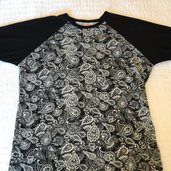 Lularoe Randy. EUC. Black background and sleeves with white paisley body. Gorgeous!