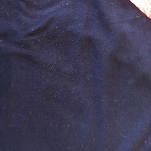 Size small Randy. 3/4 length sleeves. Dark navy with bright pink and white sleeves. Some pilling on the upper front part of the shirt. Washed per LLR instructions. Worn a handful of times.