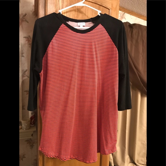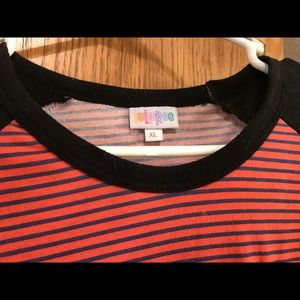 Lularoe Randy Melon with Navy stripes and black sleeves. Cared for with LLR instructions.