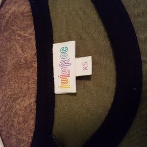 Army green middle and black sleeves. The sleeves are three quarters length.