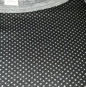 Black and whit polka dot bodice! Grey trim and grey 3/4 sleeve.