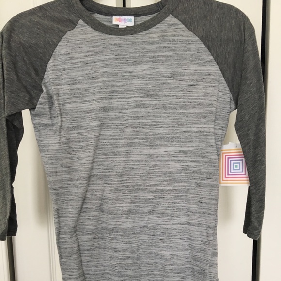 NWT Lularoe Randy, light gray body with black micro stripes, dark gray sleeves.