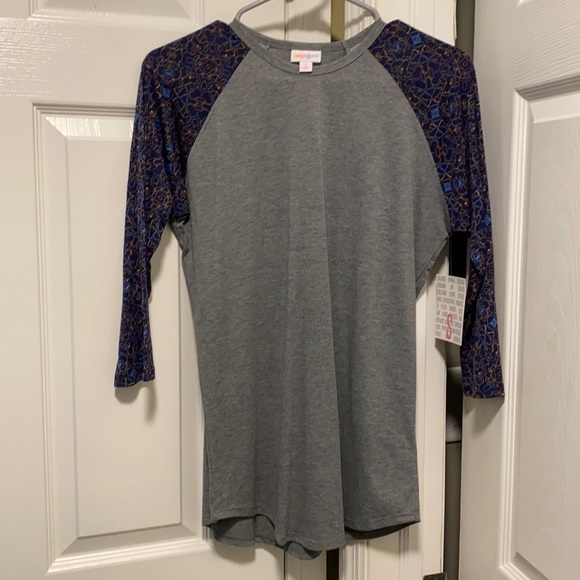 Size small Grey front with navy blue patterned sleeves Smoke free home Brand new with tags Lularoe Randy