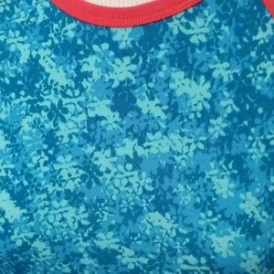 Bright turquoise and coral randy Jersey style top Turquoise/aqua design with coral sleeves and collar