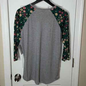 Brand new with tags, large Lularoe Randy. Grey with green sleeves with pinks & cream flower print.