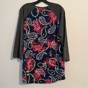 Hard to give this one up!! NWT. 2XL, paisley with grey sleeves. Fits like a large (reasons for giving up).