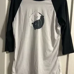 Lularoe Randy raglan tee with a panda graphic. Features black sleeves and a white body. In good condition. All clothes come from a pet friendly home.