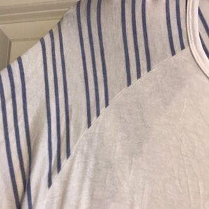 White body and blue striped sleeve