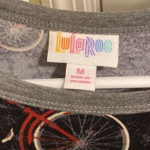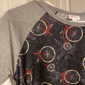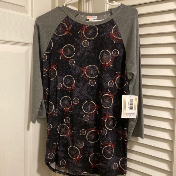 Size M gray sleeves with bike pattern front and back red bike with purple splatter and dark navy fill Brand new with tags Smoke free home