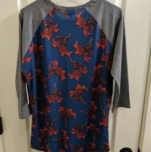 Beautiful fall randy in size medium! The flowers are almost a rust color with the blue background and grey sleeves!! Brand new with tags smoke free home dog friendly.