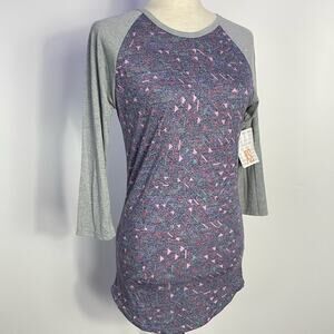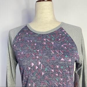 Lularoe Randy T Shirt Raglan Mid Length Sleeves Faded Triangles Gray XS NEW