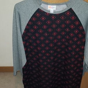 Lularoe Randy Tee. Brand new gray sleeves and black with red accents. Absolutely my favorite lularoe fit but the colors don't look the best on me.