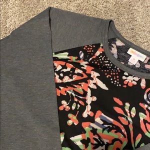 Lularoe Randy tee. Fun black background with floral print. Grey sleeves. Never worn.
