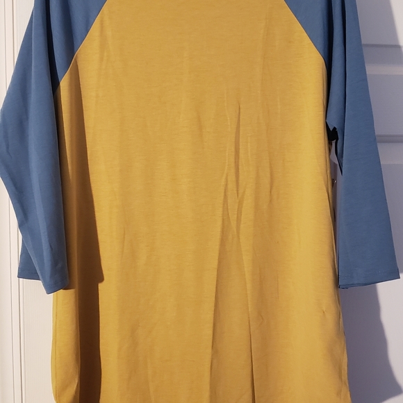Lularoe Randy Tee is yellow with a blue 3/4 sleeve. Tags are still on.. Crossposted
