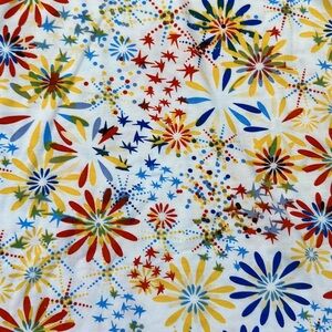 Grey sleeves, white bodice with fireworks print
