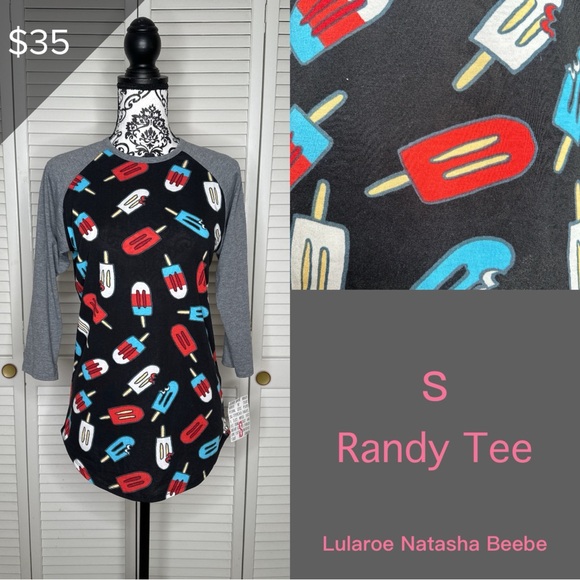 Lularoe Randy Tee size Small from the Americana collection. Black background with bomb pop print!