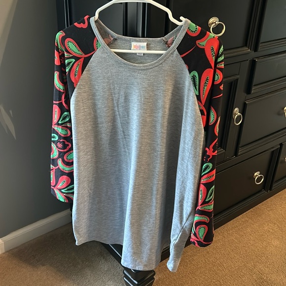 Lularoe Randy top with gray body and black floral 3/4” sleeves