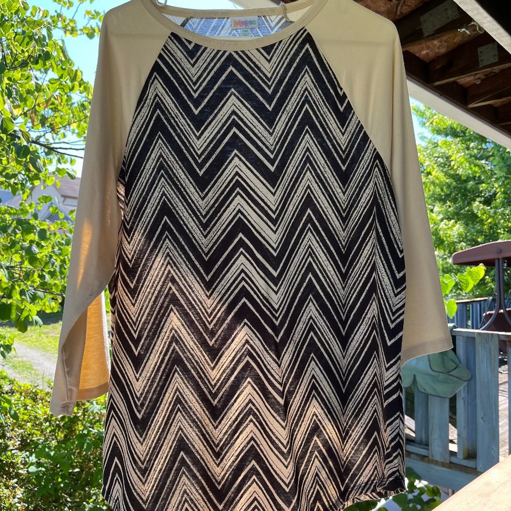 2XL Randy Top. Never worn, no tags. Chevron black and white body with cream arms. Originally $35, Asking $12.