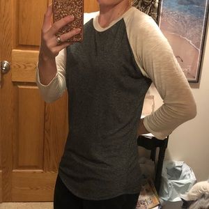 Very comfortable Randy tee!! Only worn once!! Excellent condition!! Dark gray in color with off white colored sleeves! Size XS.