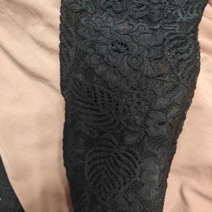Very light peachish top with solid black lace mid length sleeves, worn once. So pretty would look great with anything.