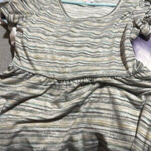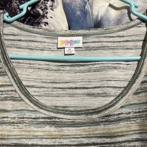 This is a size medium Riley in a beautiful horizontal stripe in shades of green. High quality Lularoe dress in a classic style. This dress combines comfort and pockets in midi length that can be dressed up or dressed down. I don’t think I even wore this once. I lost a bunch of weight and I would just swim in this now.