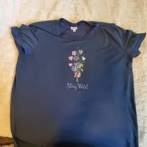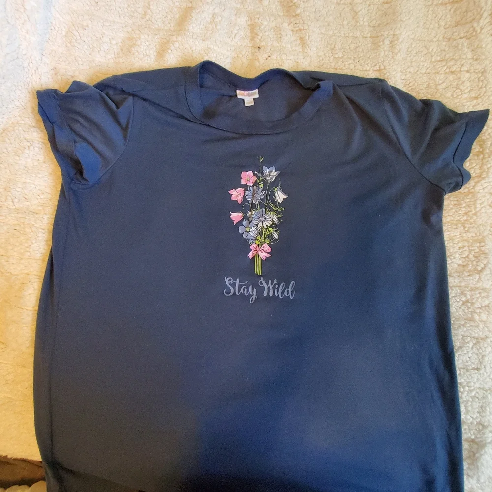 2XL LuLaRoe Rocker T. Navy with "Stay Wild" and picture of wildflowers on front. Worn maybe twice.