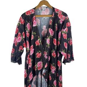 Lularoe Sarah Duster Medium Black Roses Floral Shabby Romantic Ribbed Knit