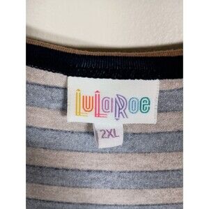Lularoe Scoop Pockets Navy Tan Striped Elbow Sleeves A Line Dress Plus Size 2XL