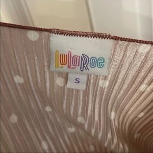 LuLaRoe Shirley in a size small. Really good condition! Pink color background with white color polka dots. There is a small looks like a pen mark on the inside bottom by the tag look at picture. Size small fits 0-8.