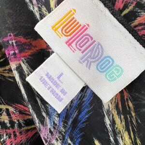 New with tags Lularoe Shirley kimono duster wrap in black with multi color feather print. Semi sheer, very loose and lightweight. Size L.