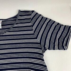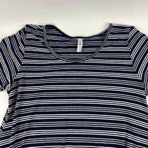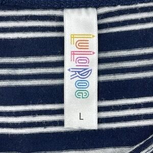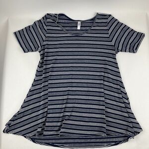 Lularoe Shirt Womens Large Blue Gray White Striped Short Sleeve Round Neck