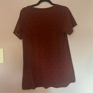 Maroon short sleeve v-neck t-shirt with a heart pattern from Lularoe