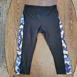 Lularoe Simply Comfortable Black Blue Floral Cropped Activewear Leggings Size S