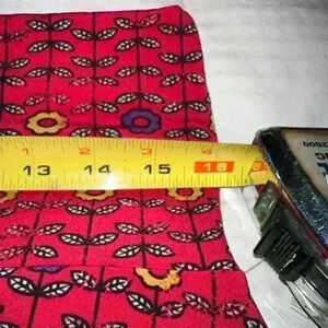 Red background, cute mustard& purple sunflowers with black & white accents. Waist 16” length in front approx 25” length in Vick 28”