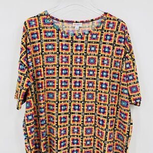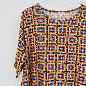 Lularoe Size Large Yellow Southwestern Aztec Print Short Sleeve Irma Tunic Top