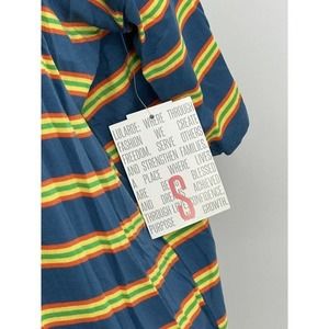 Lularoe Small Irma Tunic Blue with Orange Green and Yellow Stripes Shirt NWT