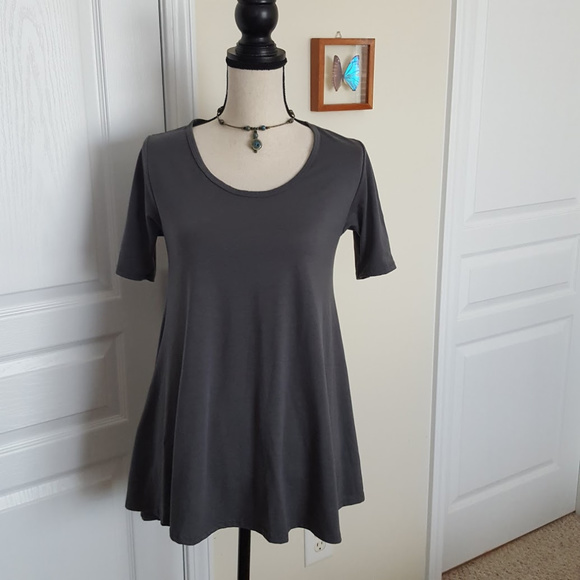 Lularoe Solid Grey Perfect T. One of my favorite Lularoe styles, flattering swing tunic and covers the bum and has side slits! Size: XXSmall, see Lularoe size chart for size comparison. Preloved, used condition. Some pilling under arms, see photos. Smoke-free home. No Trades